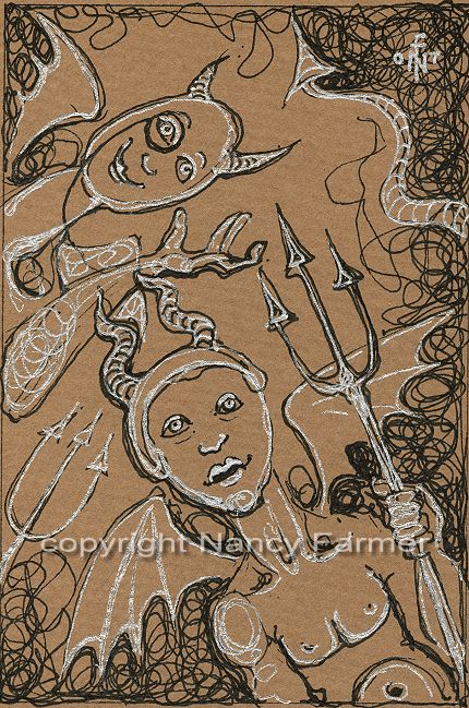 Permanent Sketch 5: Monocled Devil - drawing by nancy Farmer