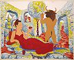 There's been something of a classical theme to several new paintings I've completed over the spring/summer of this year. It all started with a vague idea I've had for some time that the Minotaur is rather good at doing topiary. Remember the Minotaur? that was the half-bull, half-man monster of Ancient Greek times. He lived in the Labyrinth in Crete, that King Minos had specially built for the purpose.